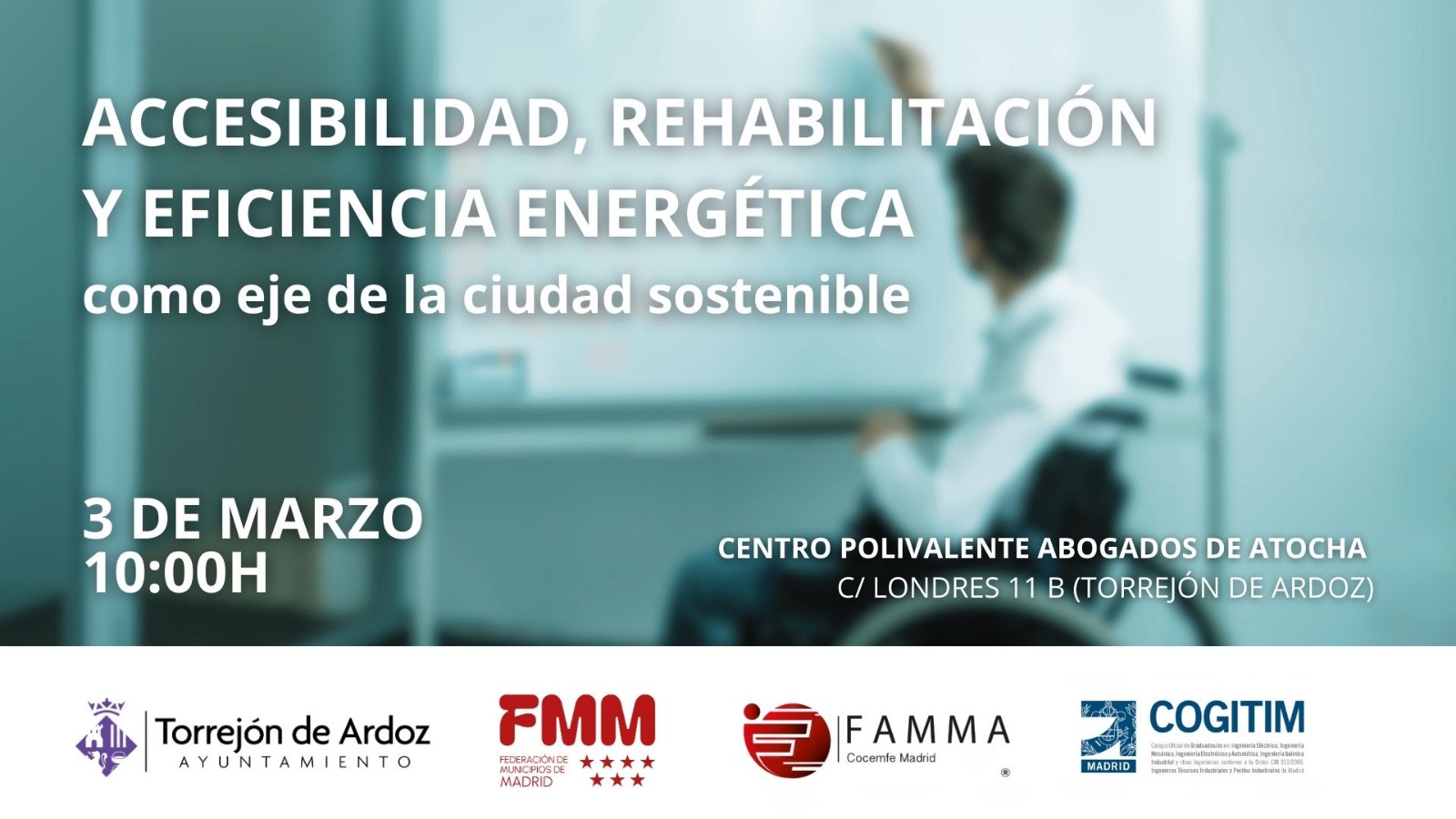 La Federación de Municipios de Madrid, junto al Ayuntamiento de Torrejón de Ardoz, FAMMA y COGITIM, celebran el próximo día 3 de marzo a las 10 la jornada “Accesibilidad, Rehabilitación y Eficiencia Energética» donde diferentes profesionales darán a alcaldes, concejales y técnicos municipales la formación necesaria para seguir adecuando los municipios a todas las personas independientemente de su situación física y logrando que además se haga de manera sostenible y responsable.